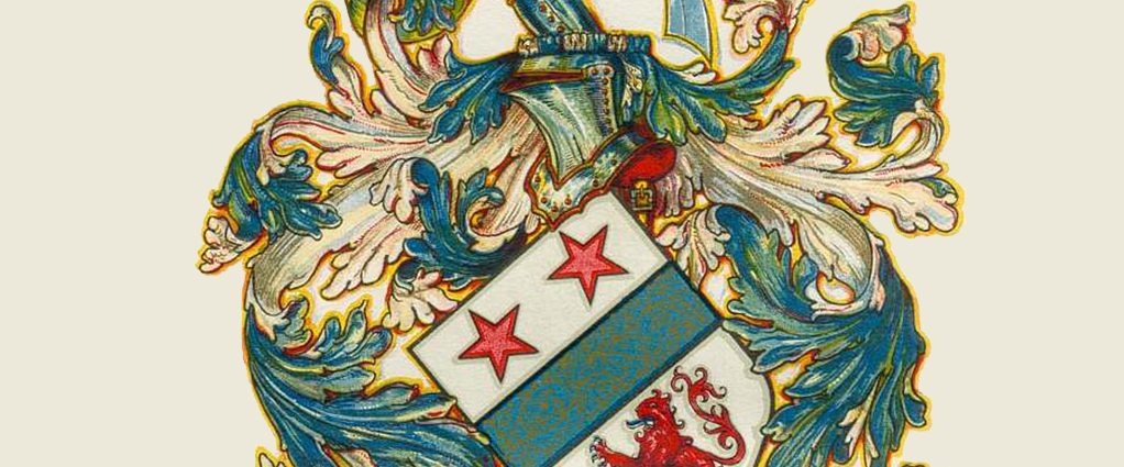 Armorial Honours: “Ar. a fess betw. three mullets in chief and a lion ramp. in base gu.” officially documented in Burke’s General Armory. When translated, “Silver, a red middle third between three red stars in the upper third and a red lion attacking in base.” Above the shield and helmet is the crest which is described as “A hand grasping a scimitar, all naturally colored.” See Armorial Bearings for information regarding registration and use.